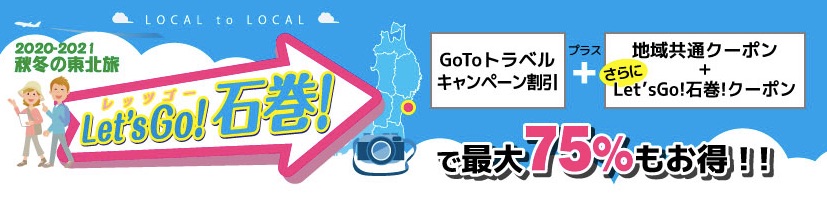 Let’sGo!石巻!キャンペーンは、GoToトラベルと併用することで最大75%割引されるキャンペーンです。